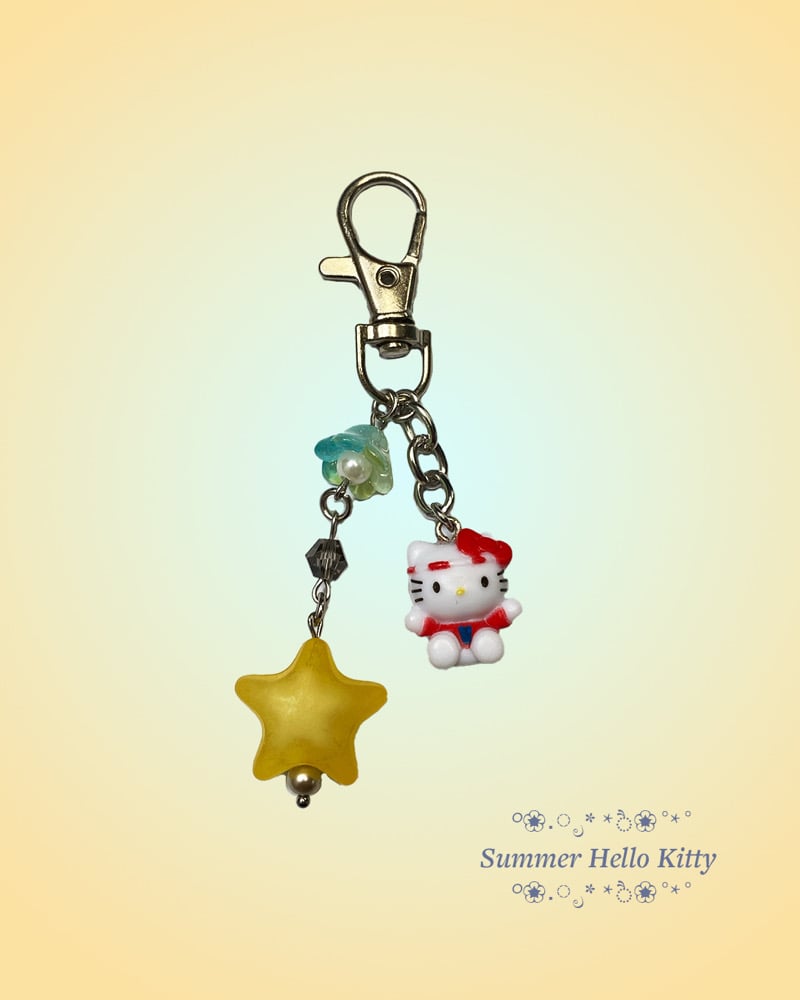 These H.K key clips are perfect to instantly add some Sanrio cuteness to your life. This mini series features a Hello Kitty charm, acrylic star, durable stainless steel clip, and other bead/charm details. All one of one pieces.