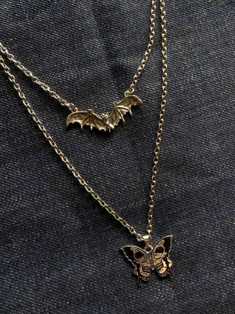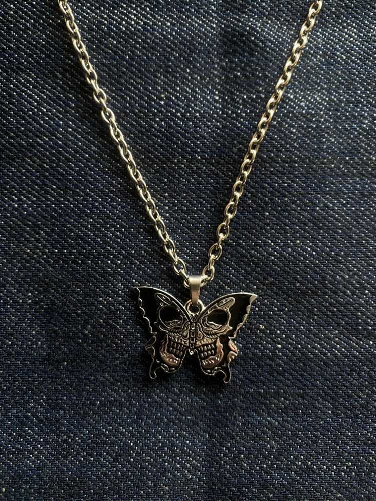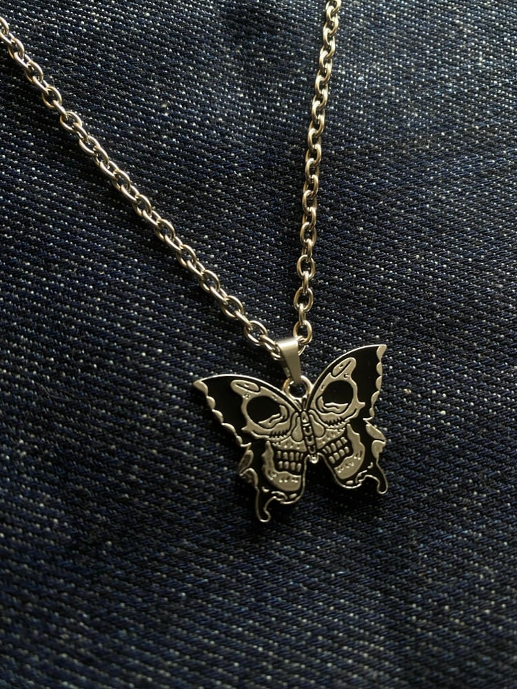 Featuring a butterfly skull charm on stainless steel chain, the Morte Flutter Necklace is the perfect necklace for the Halloween season. Perfect for layering or wearing on its own, this necklace adds a touch of dark beauty to any outfit, whether you're dressing for the witching hour or your everyday haunt.