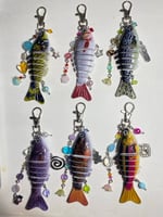 If you’re a fan of unique and beautifully weird accessories, then these fish bait Sardine keychains are perfect for you! With the sectioned build, these sardine inspired charms have a satisfying and realistic movement to them and look great clipped onto a bag of your choice. Paired with stainless steel metals, charms, glass and acrylic beads, and fresh water pearls to bring the ocean right into the palm of your hand. All one of a kind designs.
